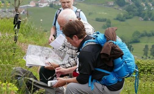 ![]() G4 G5 : Un jeudi plein de surprises. Près de la ferme Harguindeguia, le parcours de montée vers le Garalda dûment répertorié sur les cartes, et vérifié lors de la reconnaissance, était purement et simplement interdit ( nouvelle barrière et magnifique panneau d'interdiction aux randonneurs ). D’ou un parcours un peu chaotique à flanc de montagne avec passages de clôtures et barrières et retour parmi les chachis. Ce fut quand même une belle journée pour le groupe 4, et un peu moins pour le groupe 5.
